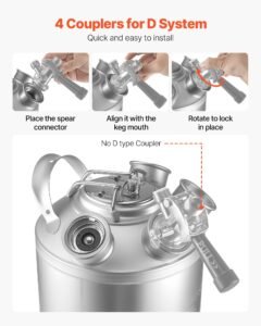 Wide Compatibility: This beer line cleaning kit comes with four D-type couplers that fit most common beer setups. It supports quick connections for easier maintenance, making cleaning faster and less complicated