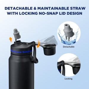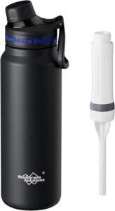 - Leakproof & Adventure: Engineered with the leakproof lid, durable handle and anti-slip grip, this water bottle survives rugged trails, gym bags, or car cupholders. The entire water bottle (except the filter) is dishwasher. Enjoy hydration for hiking, camping, or daily commutes.